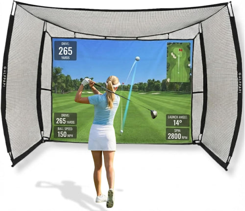 Mobile Golf Simulator Net – 10ft Compact Practice Net with Steel Frame & Impact Screen – Indoor & Outdoor Golf Training for Backyard, Garage & Home Sim Setup